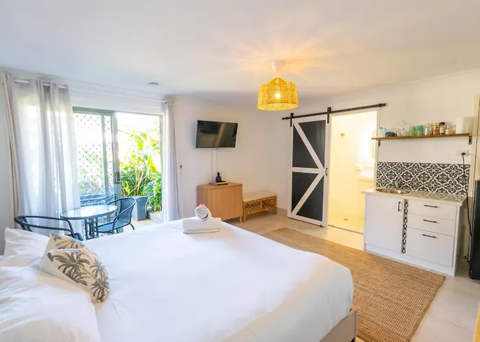 Situado a una distancia de 2 km de North Stradbroke Island Surf School, el Studio 9 Point Lookout cuenta con una piscina y un patio. Los huéspedes también pueden tomar un autobús en la estación de autobuses Mooloomba Rd at Frenchmans Beach, situada a tan solo 10 minutos a pie, para explorar Point Lookout.